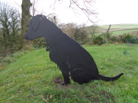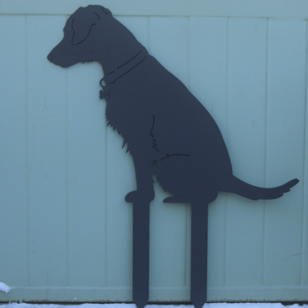 Nicole drew the image of Basil from the photograph supplied by his owner. He was then cut, fabricated and painted in a weather resistant paint. He was mounted on a stake to be secured into the ground.