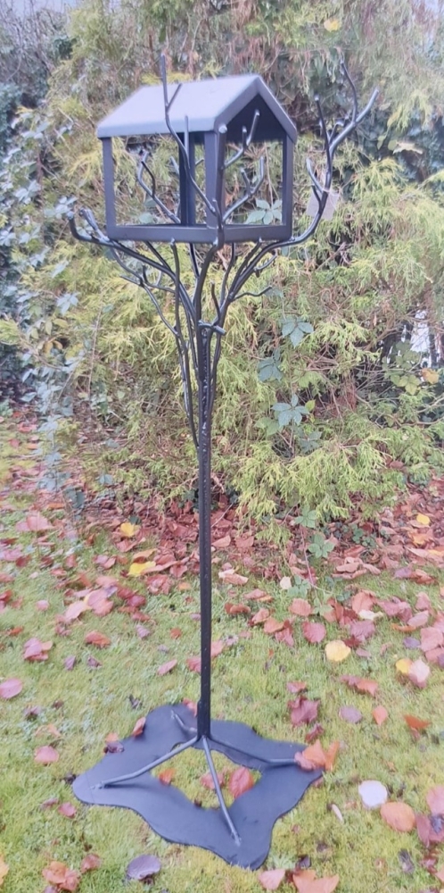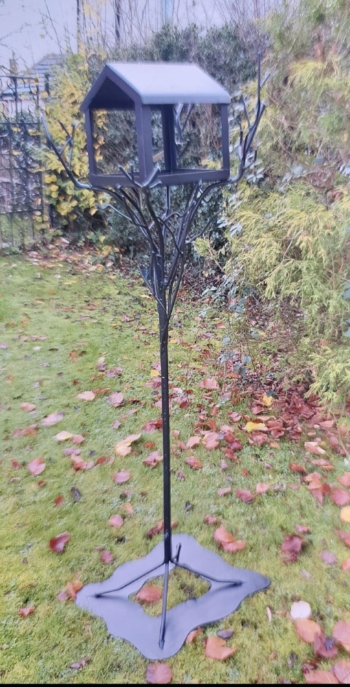 A bespoke bird feeding station made from 12mm black bar which was fabricated in the shape of a tree. This was painted in black but can also be made from rusty metal.